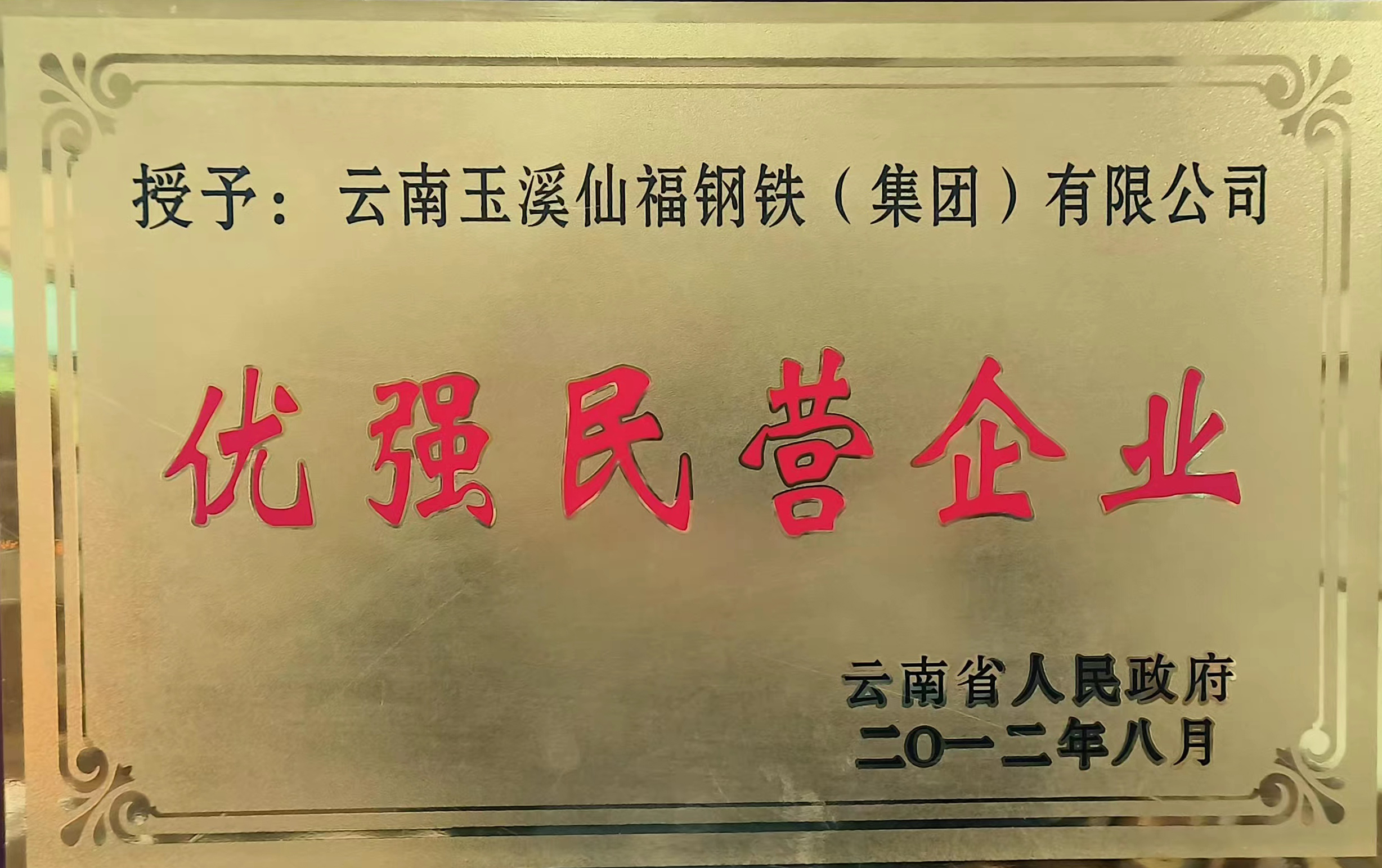 云南省人民政府授予"優強民營企業“榮譽稱號